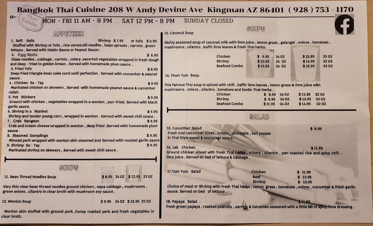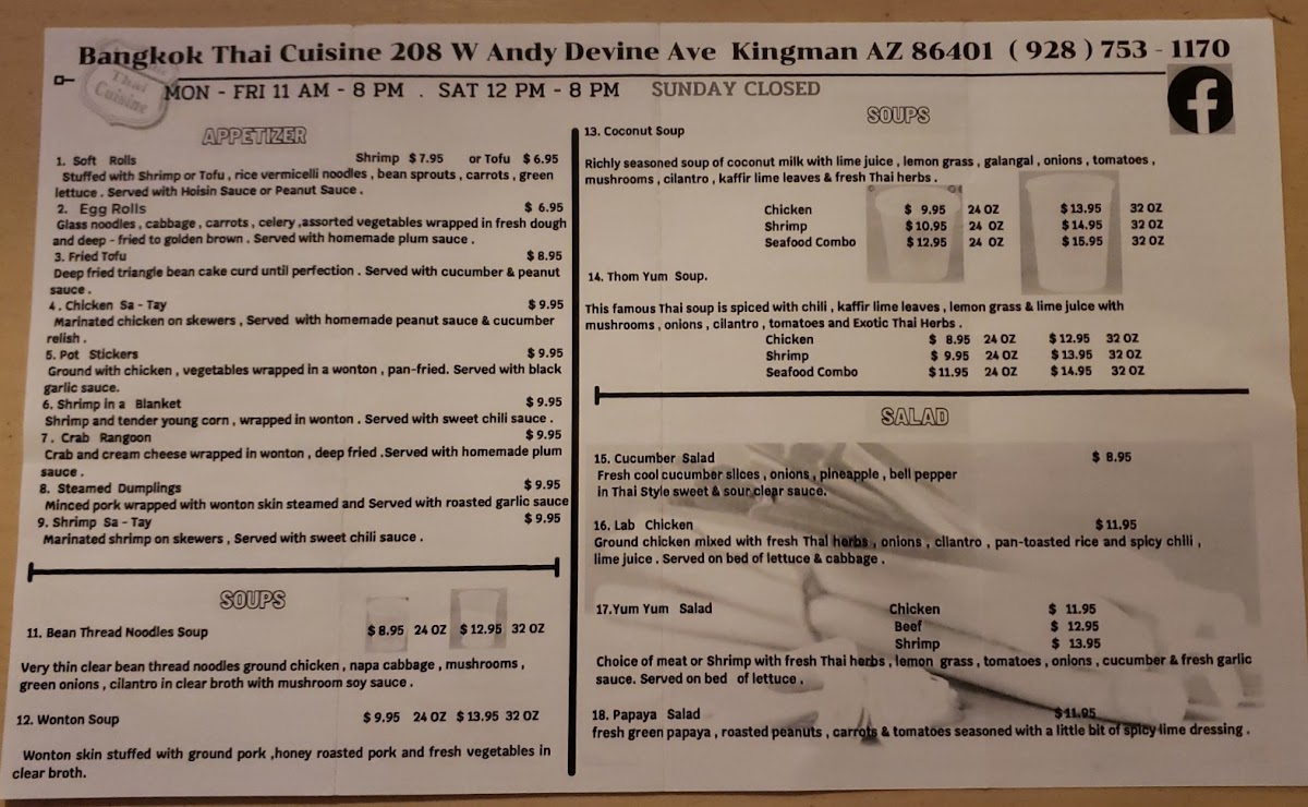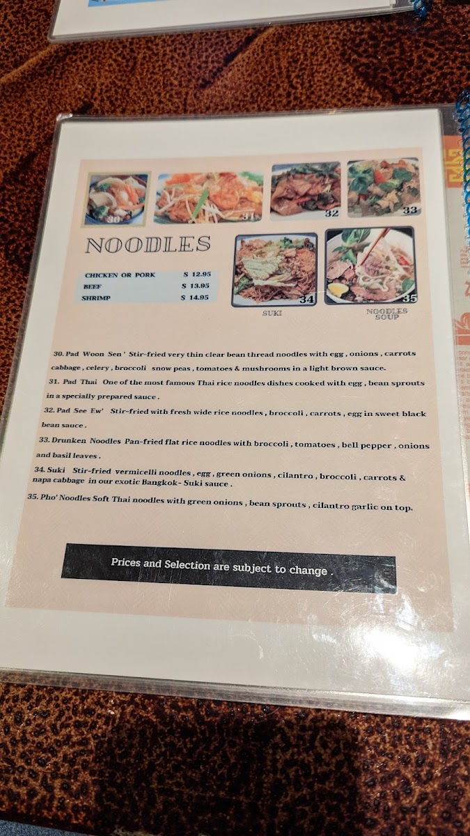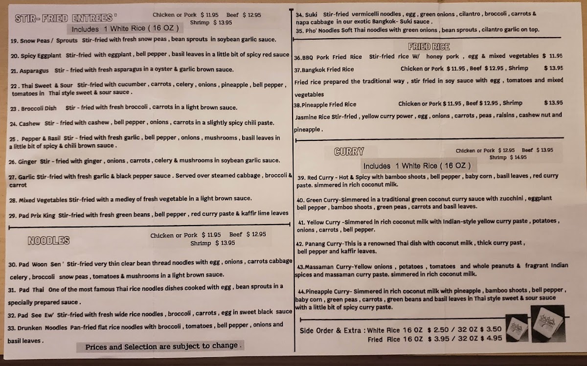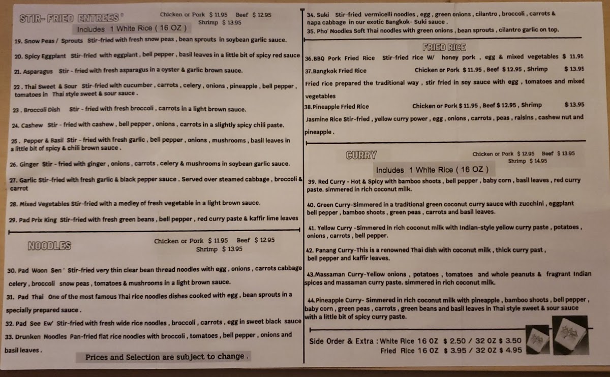 Bangkok Thai Cuisine Menu