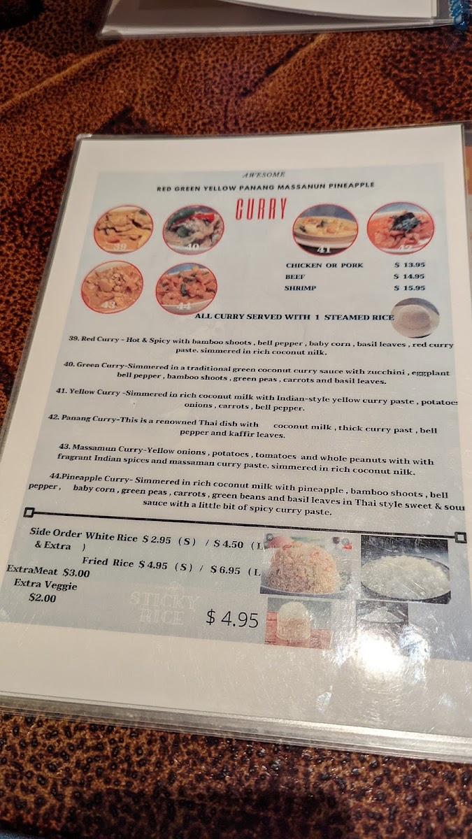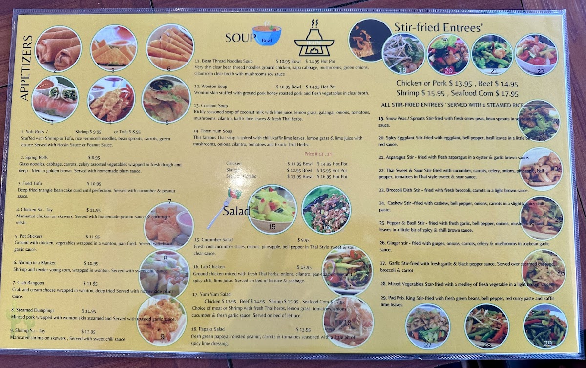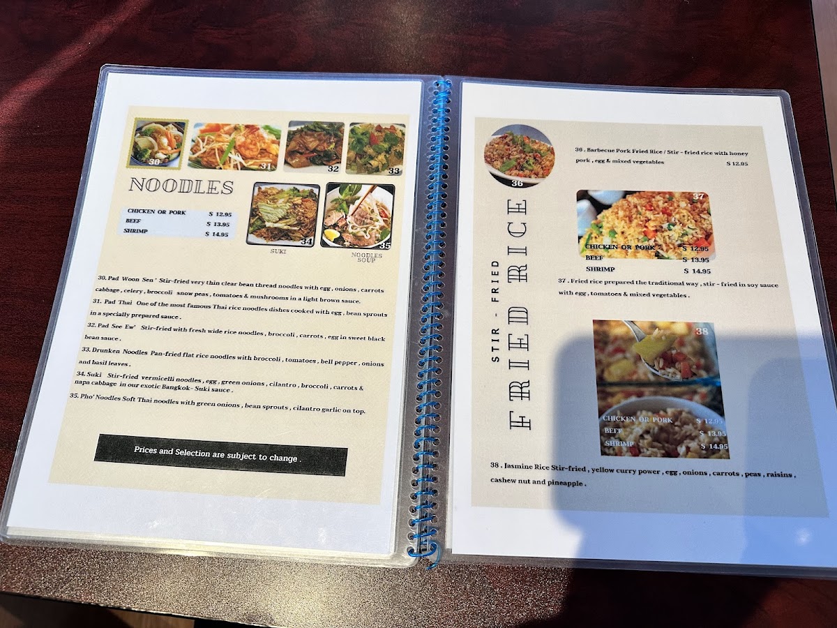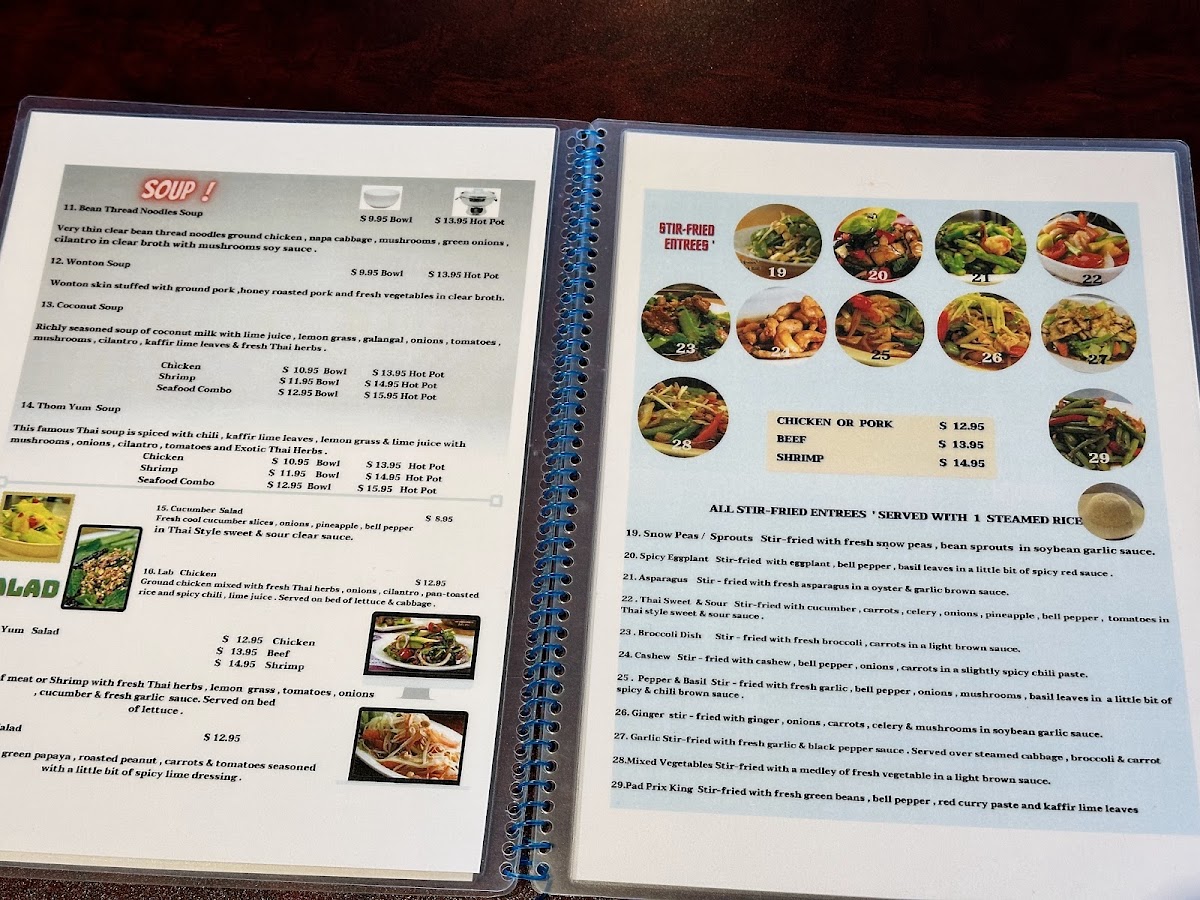 Whether stopping by for a lunch break or settling in for a relaxed dinner, the menu caters to a range of moods—light, fresh salads like Cucumber Salad balance well with heartier options like Barbecue Pork Fried Rice or Massamun Curry with creamy coconut milk. Warm bowls of Green Curry with Chicken or the seafood-rich Tom Kha Hot Pot are perfect on cooler evenings, offering a soothing, layered experience.